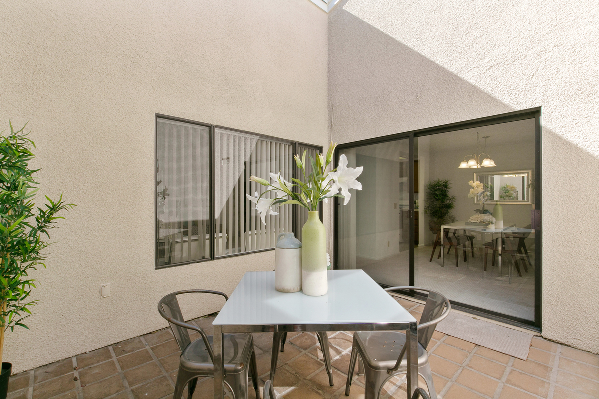 The center atrium patio brings natural light flowing into every room. The spacious master bedroom has dual closets, a bathroom vanity and opens up to the center atrium patio. Additional features include vaulted ceilings, separate dining room, 1 detached car garage close to the unit and ample guest parking right in front. Huntington Landmark has tons of amenities – 2 swimming pools and spa, tennis courts, pickle ball courts, shuffleboard, billiard room, ceramic room, weight room, putting green, club house, RV parking, and much more for your enjoyment.
